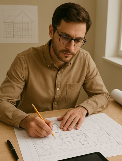 Keahlian kami di bidang arsitektur berkisar dari proyek rumah pribadi dan proyek komersial seperti desain rencana induk untuk perumahan, kantor serta Bangunan sosial.