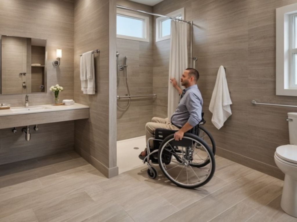 Saat memutuskan ruangan mana yang akan di ubah menjadi kamar tidur disabilitas, pastikan harus ada kamar mandi di dekatnya. Sebaiknya, kamar tidur terutama yang dirancang untuk pengguna kursi roda, memiliki kamar mandi dalam.