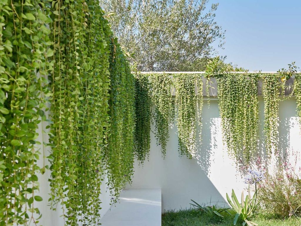 Pohon merambat yang diaplikasikan pada pagar, balkon, atau dinding semi-terbuka dapat berfungsi sebagai penyaring visual alami. Tanaman ini membantu menjaga privasi penghuni tanpa harus menutup bangunan secara masif, sehingga sirkulasi udara dan pencahayaan alami tetap optimal.