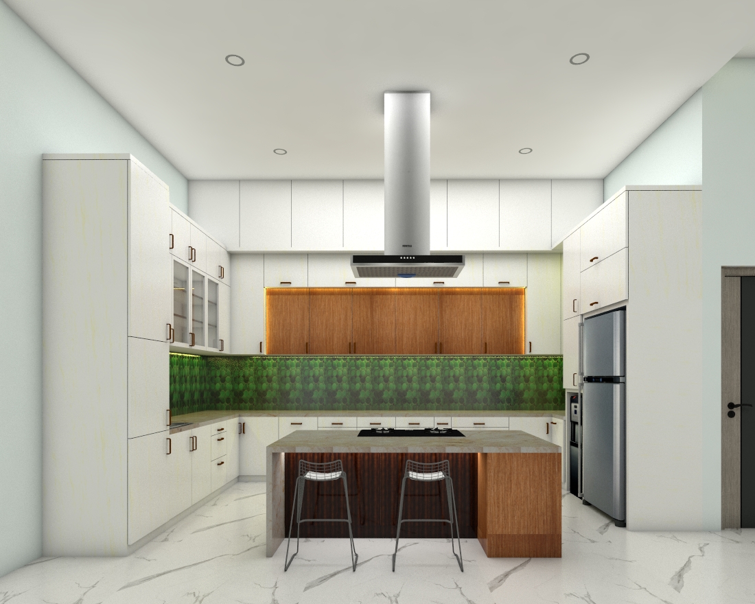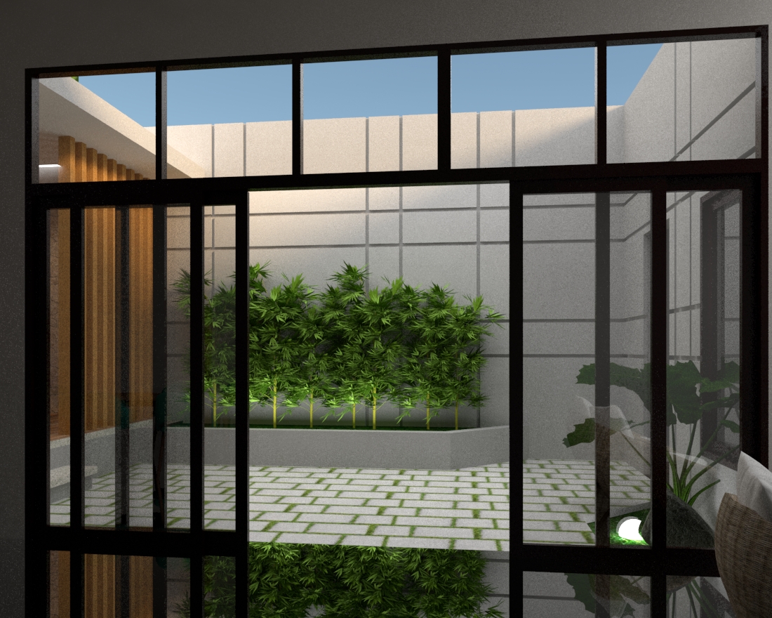Modern minimalist style with a clean and luxurious appearance, this residence does not feel stiff because of the soft color combination combined with elements of wood and natural stone, the luxurious design does not make this house seem heavy. To maintain maximum temperature and lighting in the house, a back garden is made inside.