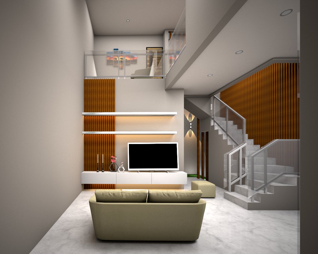 SN house with a land area of 90 m2 has a mezzanine concept in its interior, where activities on the ground floor can be seen from the second floor. The mezzanine concept allows for maximum ventilation & air circulation in the room.