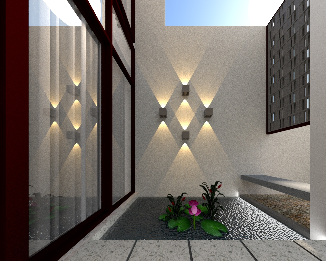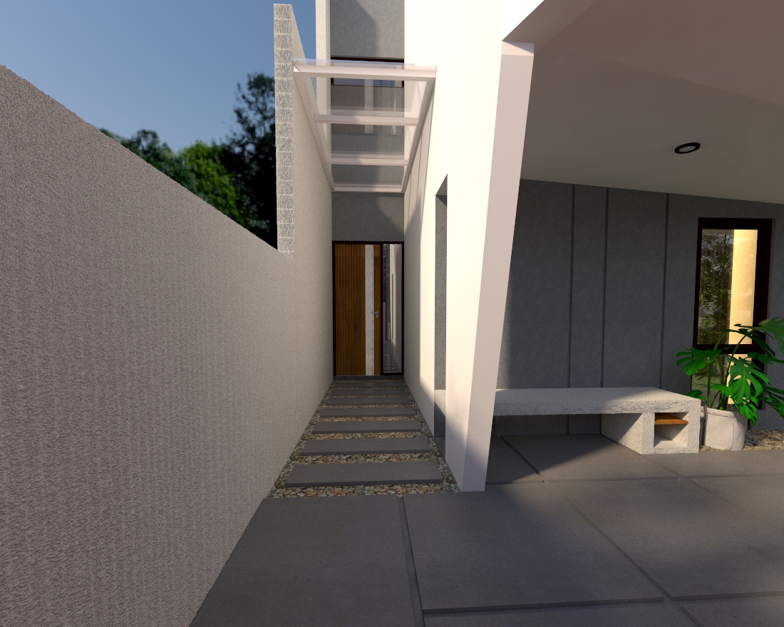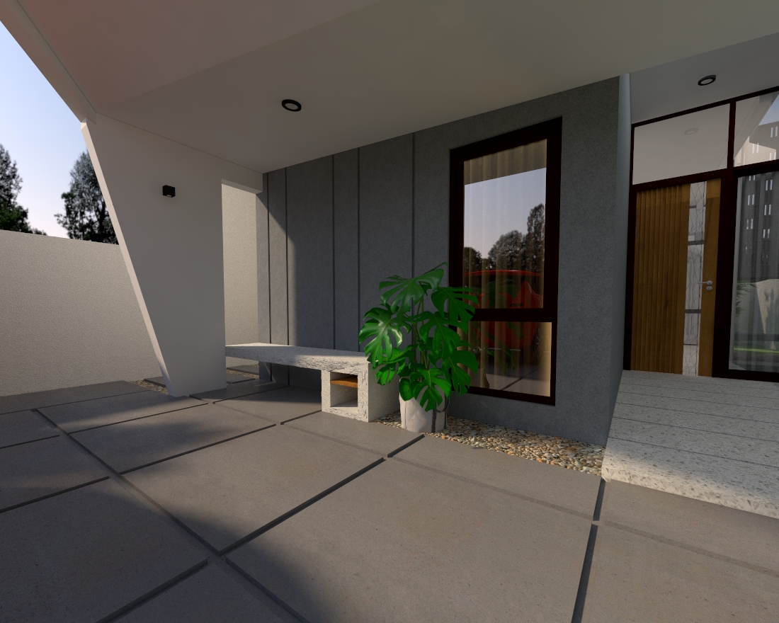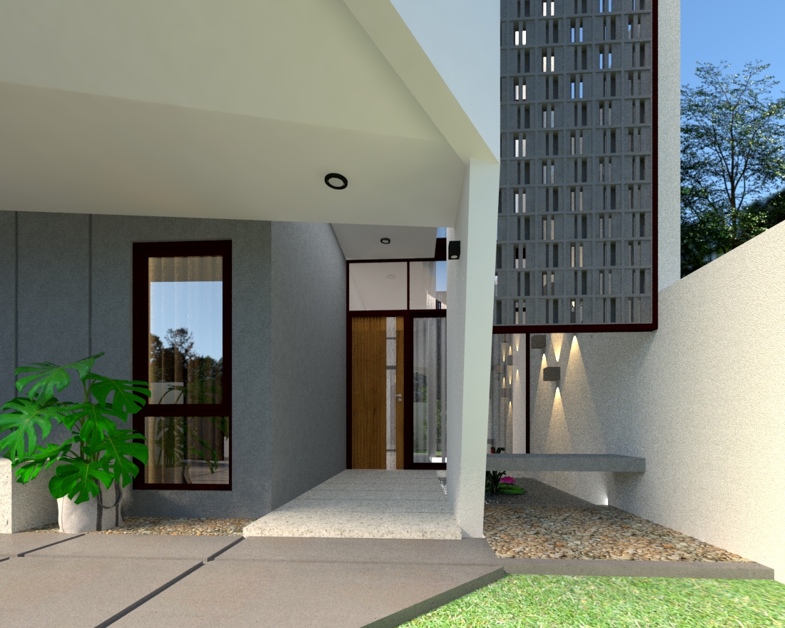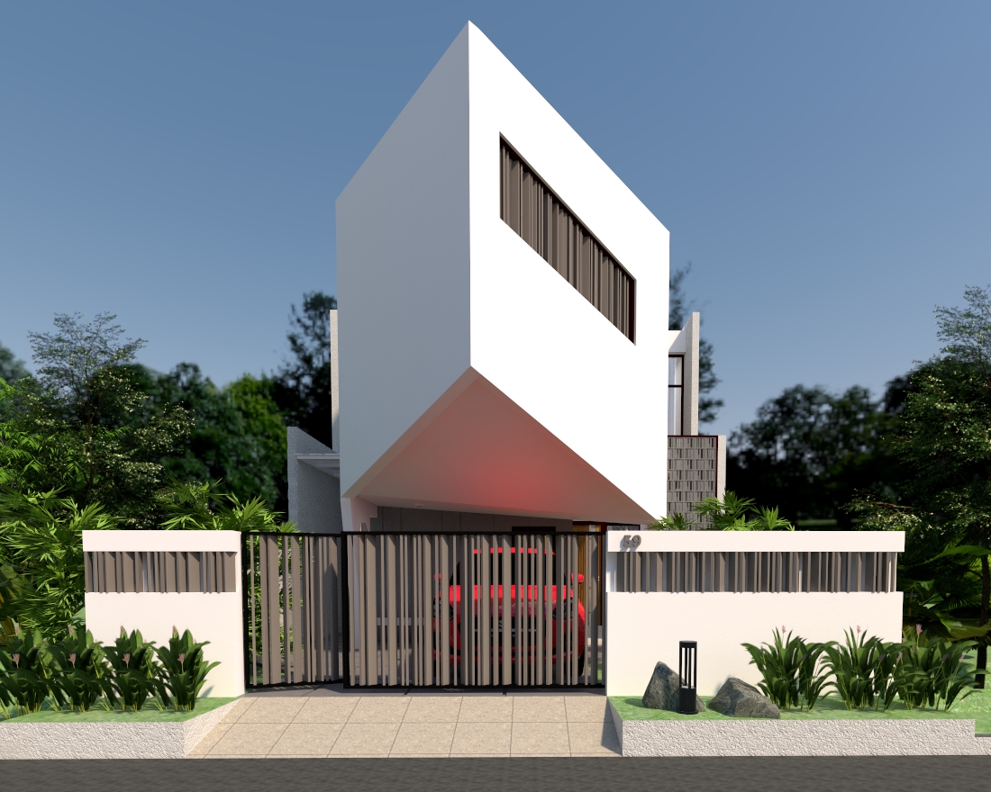 The contemporary architectural concept, with massive sharp-angled areas makes this building different from surrounding buildings, apart from being aesthetic, the massive areas also function to block exposure to sunlight because this residence faces South. This building consists of 2 floors, where on the ground floor there is a bedroom, service room and back garden, while on the second floor there is the main bedroom, children's room and balcony.